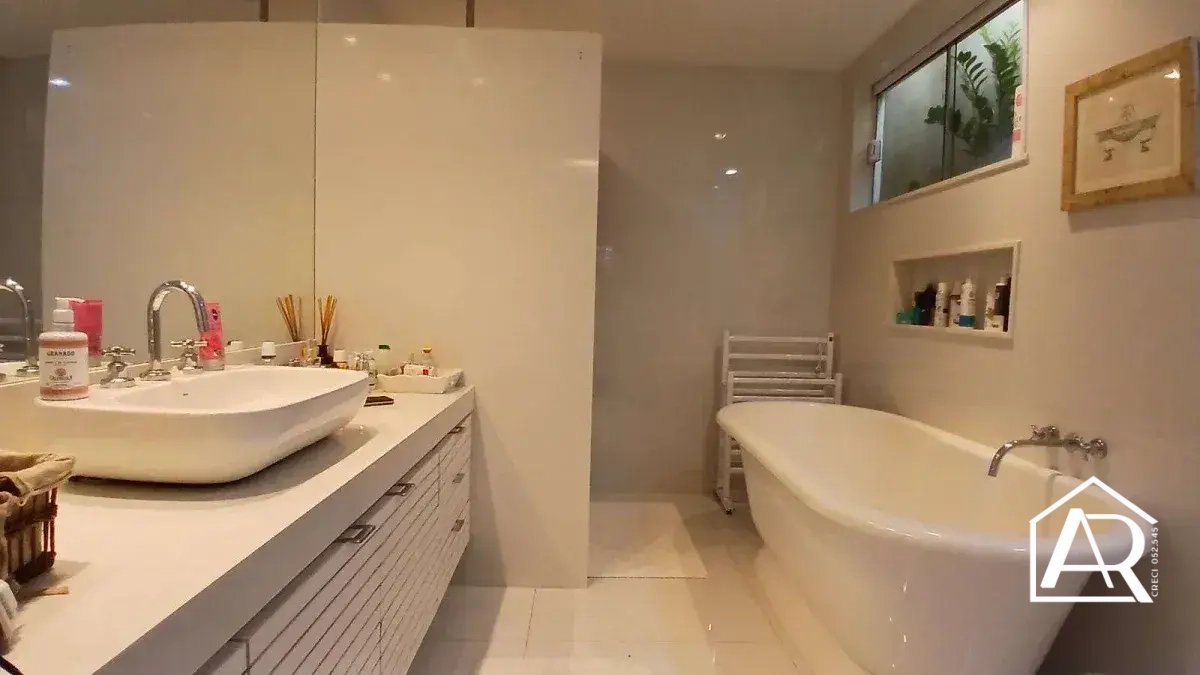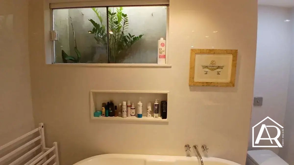 Sala de estar ampla dividida em dois ambientes; 4 quartos originalmente, transformados em 3, sendo 2 suítes, suíte master com closet, banheira de hidromassagem e espaço para home office; banheiro social e lavabo; cozinha com armários; área de serviço e dependência completa. Totalmente reformado com acabamentos de alto padrão.